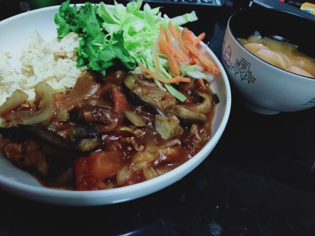 カレーライスですが、お米を使わず、お豆腐をお米の代用し、糖質制限しました^^