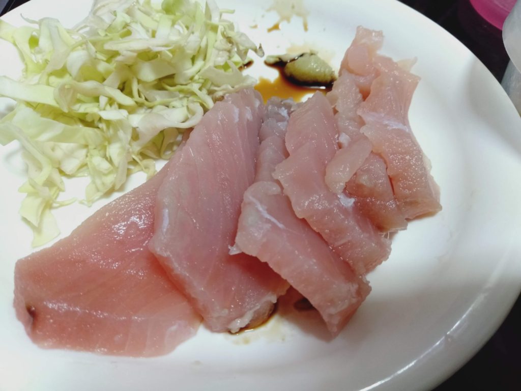 この日は帰りが遅く疲れてたのもあってスーパーで買ったお刺身切っただけ、、汗