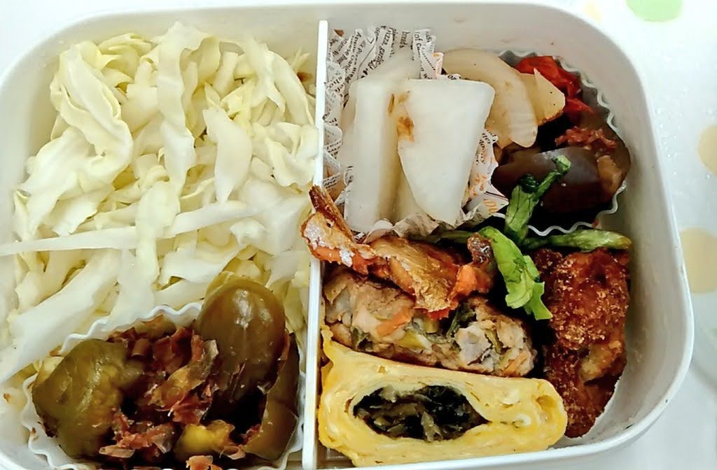 この日のお弁当は冷蔵庫の中身減らすためおかず多めでした!