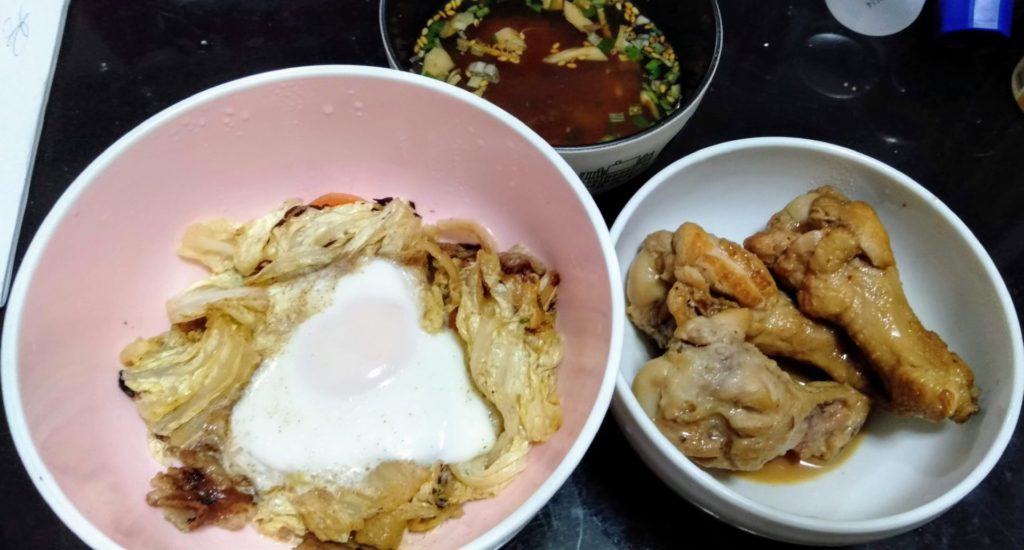 たまごと手羽元でタンパク質多めで!