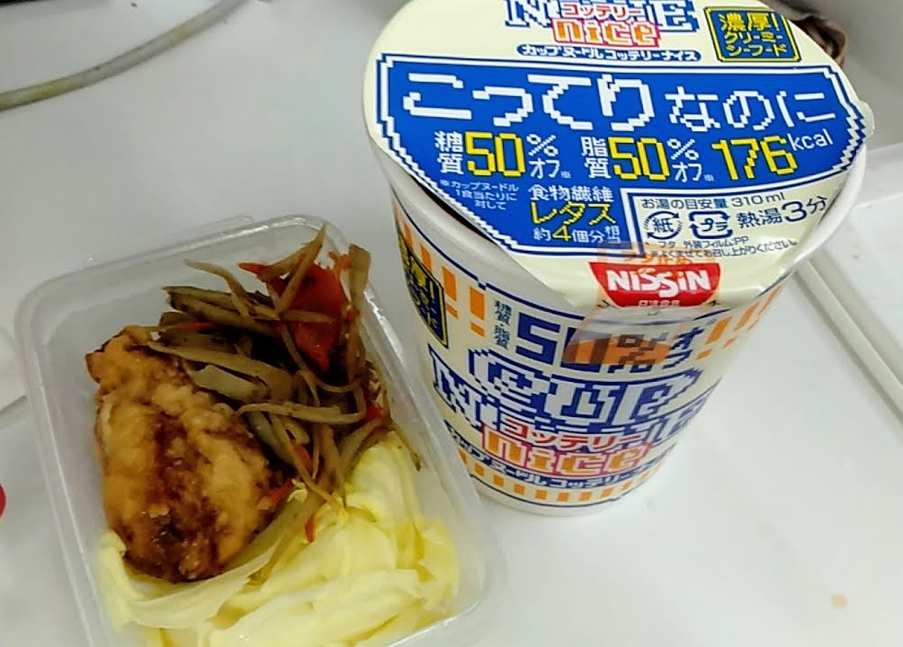 今日寝坊したので糖質オフのカップラーメンで!