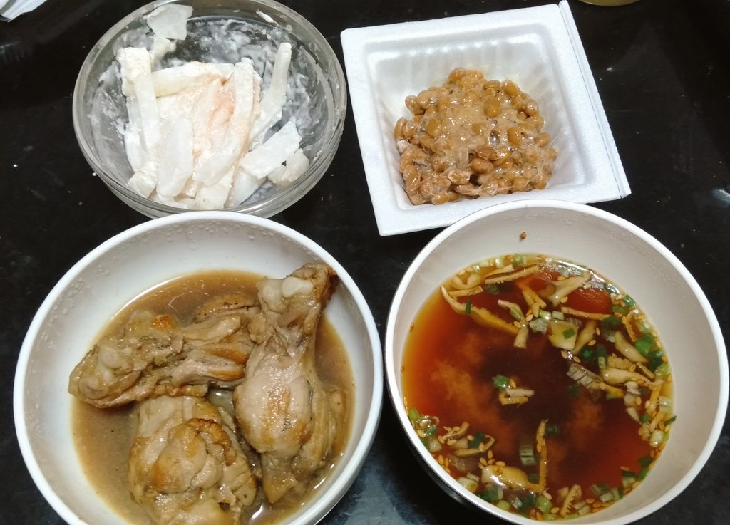 夜に4種食べれるのいいですね、納豆をプラスだけで、いい感じに感じます