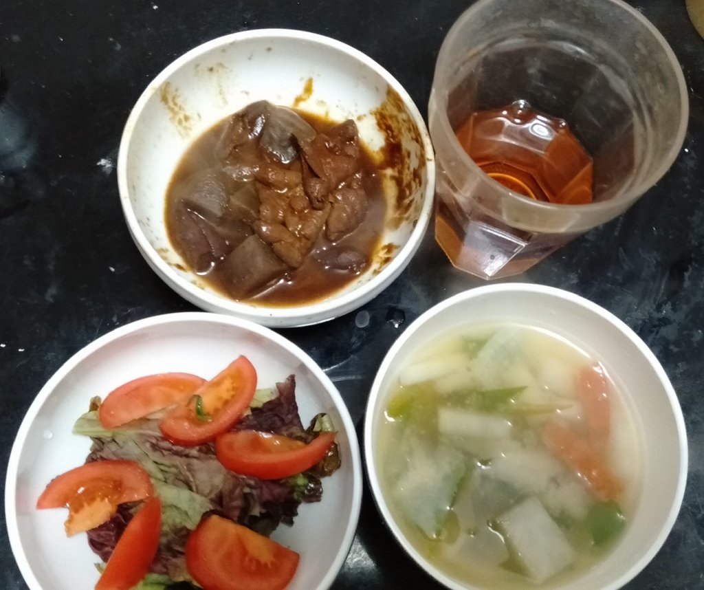 昨日のちゃんぽんスープをお昼も! それと少しのおかずで、、、