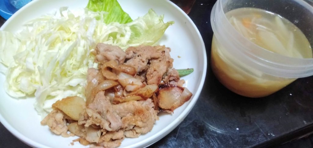 やっぱ生姜焼機美味しいですね、豚肉で元気を付けます