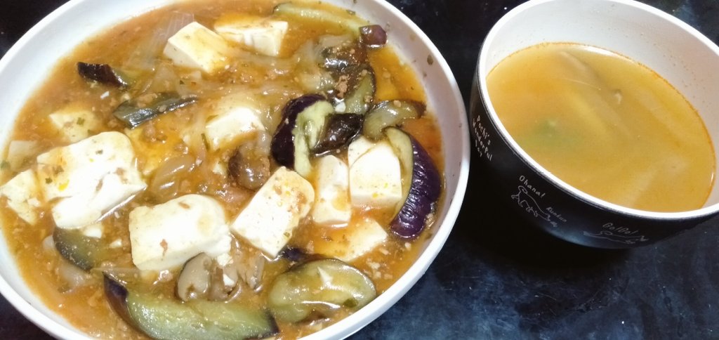 ナスが余ってたので麻婆豆腐に追加しました、合わないわけがない